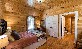 Located in the Lodge Building. Situated about 300 feet from the lake. Main room contains living area with a cast iron gas fireplace and sleeper sofa, dining area and kitchen. Bedroom with queen bed. Full bathroom with shower (no tub). The east-facing covered deck of Guides has a lake view in the distance through the trees. In addition the covered porch between the cabins is shared with Mrs. Otis, and has a woodland/camp view.