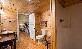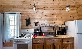 Located in the Lodge Building. Situated about 300 feet from the lake. Main room contains living area with a cast iron gas fireplace and sleeper sofa, dining area and kitchen. Bedroom with queen bed. Full bathroom with shower (no tub). The east-facing covered deck of Guides has a lake view in the distance through the trees. In addition the covered porch between the cabins is shared with Mrs. Otis, and has a woodland/camp view.